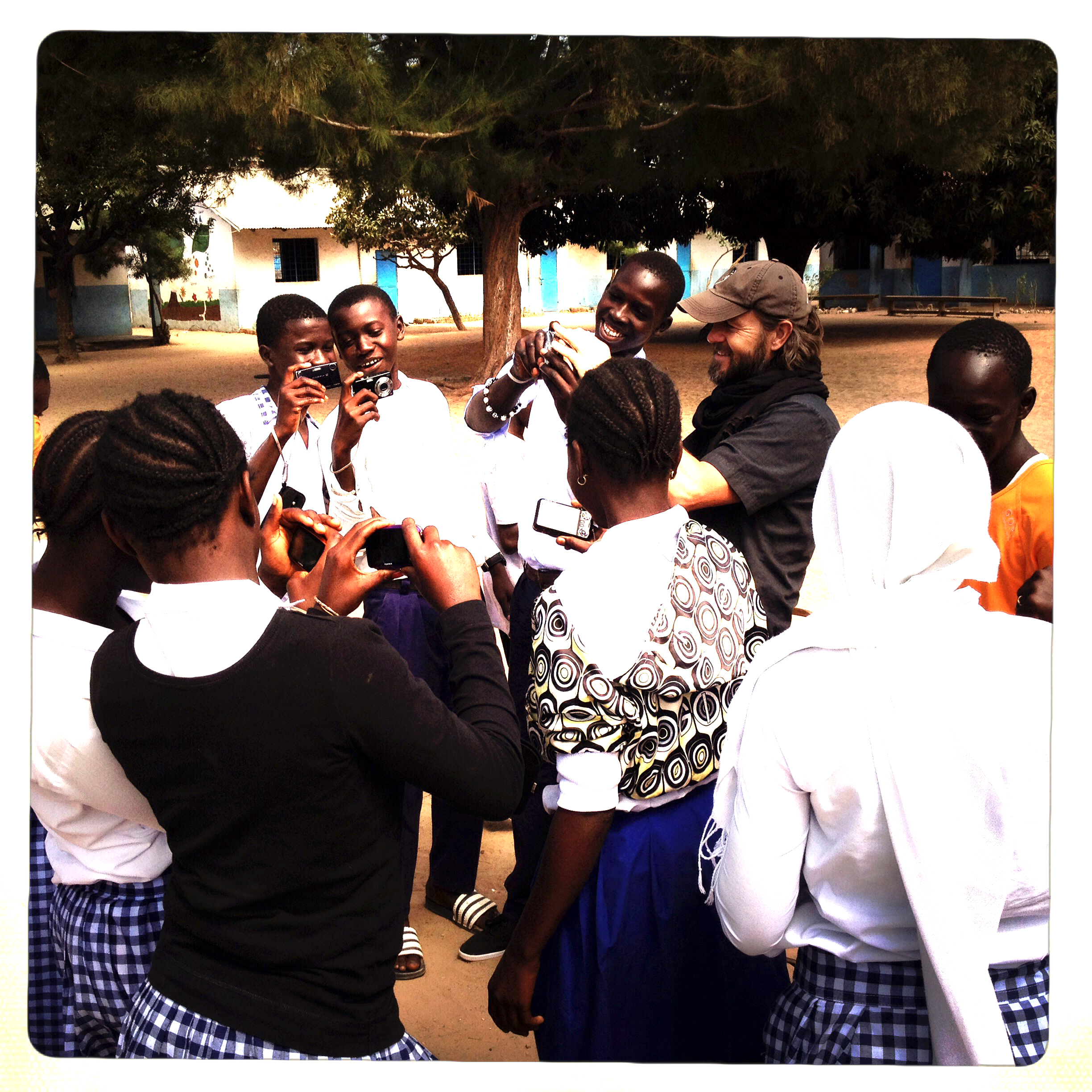 Tutor and photographer, Jason Florio, with the Kartong village students – image © Helen Jones-Florio