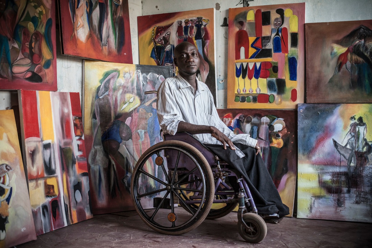 A short video portrait shot in The Gambia, of Togolese painter Amigoe Dieudonné, who has traveled for over thirteen years around West Africa in his wheelchair, stopping along the way to create extensive bodies of work, which he exhibits and sells to be able to continue his odyssey.
