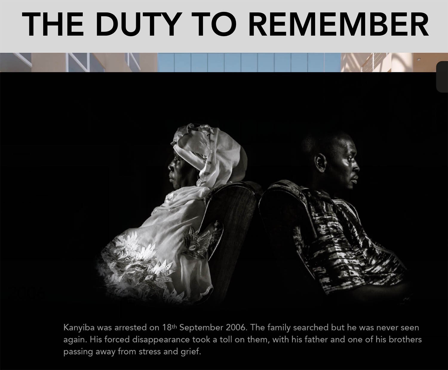 Exhibition: ‘The Duty to Remember’ – take an interactive stroll around a virtual 3D exhibition, featuring colour portraits by Jason Florio & Helen Jones-Florio – from ‘Gambia-victims, and resisters’, and black and white portraits by Muhammed Bittaye.