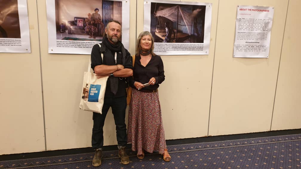 Photographers & filmmakers, Jason Florio & Helen Jones-Florio with their exhibition ‘Gambia-victims, and resisters’, The Gambia, West Africa April 2021. Image by @flex_dan