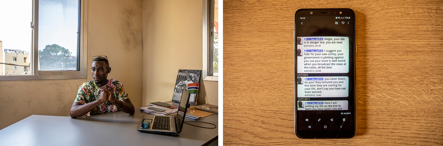 (RIGHT) Threatening phone messages he Alagie Abdoulie Ceesay received a few days before he was abducted and tortured