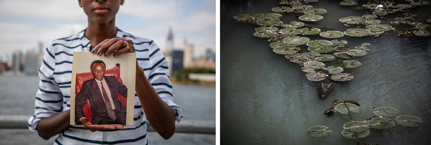 (LEFT) Nana-Jo Ndow, daughter of Saul Ndow, holding a picture of her father who, in 2013, was forcibly disappeared from Senegal, along with Mahawa Cham, former Gambian MP. Witness testimonies revealed that they had been abducted and taken over the border into The Gambia, where they were both killed by Jammeh’s security forces in Jammeh’s home village. “We want answers and we want justice, and we will not give up until those who are responsible are held accountable.” (RIGHT) One of three crocodile pools in former Gambian president, Yahya Jammeh’s home village. It is alleged that a number of Jammeh’s victims were dropped into local wells and some thrown to the crocodiles to destroy the evidence.